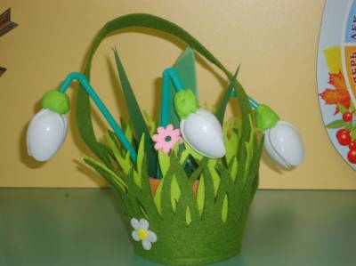 Самый первый, самый тонкий, Есть цветок с названьем нежным. Как привет капели звонкой, Называется подснежник. В. Нищев Здравствуйте, уважаемые Маамовцы. Сегодня хочу предложить Вашему вниманию, как Вы уже, наверное, смогли догадаться по вступлению, мастер-класс по изготовлению первого весеннего цветка. Конечно, это подснежник. Для работы нам понадобится: • одноразовые пластмассовые чайные ложки белого цвета; • пластилин (зелёный) ; • трубочки для коктейля зелёного цвета; • ножницы; • цветная бумага зелёного цвета; клей • любая баночка; Этапы изготовления: 1. Отрезаем от наших ложек ручки. 2. Далее из зелёного пластилина лепим основание для цветка - цветоложе. 3. Теперь необходимо воткнуть три ложки (три лепестка) в получившееся цветоложе. 4. Следующий этап: стебелек. Для этого берем зеленую трубочку для коктейля и тоже прикрепляем к получившемуся бутону. 5. Далее к стеблю при помощи клея приклеиваем лепестки. 6. Заключительный этап: сажаем наш подснежник в горшочек. Для этого в основание горшка, которым может служить любая цветная баночка, выкладываем пластилин. Вставляем в баночку наш подснежник. | |